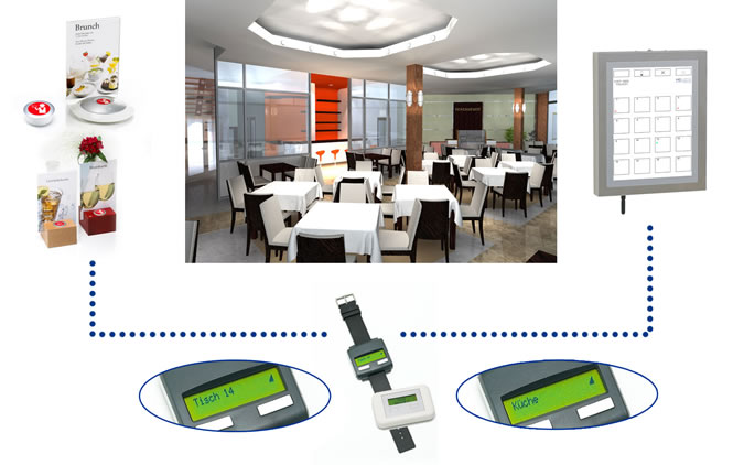 Das Geheimnis heißt Service Ruf. Der kleine Mini-Pager am Handgelenk der Servicekraft verrät ihr sofort und diskret, an welchem Tisch sie gebraucht wird. Kein Kunde muss mehr unnötig lange auf persönliche Assistenz warten. Mit einem Druck auf den Rufknopf erfährt sie es sofort und kann kurzfristig und gezielt reagieren.